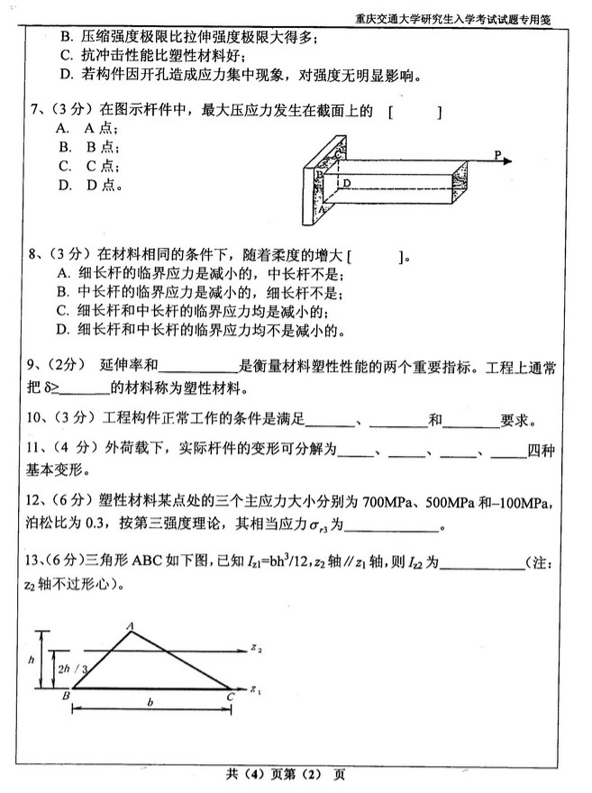 2013-2015重庆交通大学材料力学半岛在线注册真题(2)