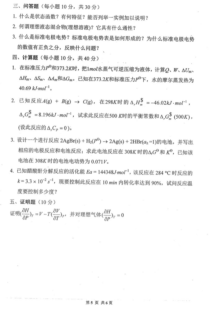 2010年云南师范大学617物理化学半岛在线注册真题(5)