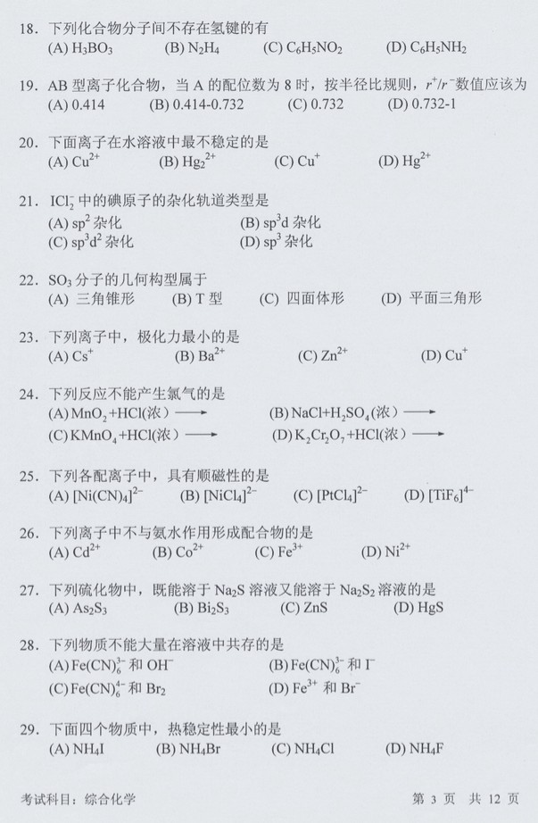 2016中国科学技术大学综合化学846半岛在线注册试题(3)