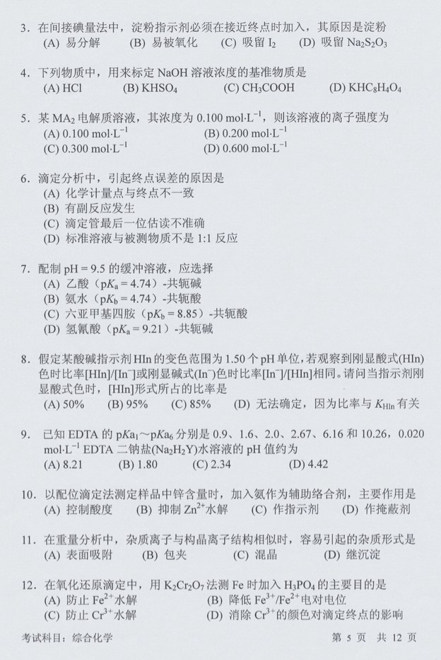 判断题10道,10分。可能没复习好,没挑出错来,感觉都对。记得有滴定盐酸的基准物质 是草酸钠,吸光光度法测铁用铁空心阴极灯,原子发射外标法应用最广