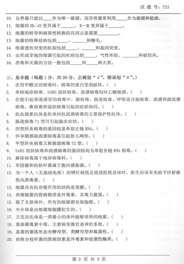 2010年军事医学科学院微生物学半岛在线注册真题(2)