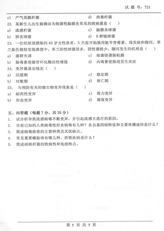 2010年军事医学科学院微生物学半岛在线注册真题(5)