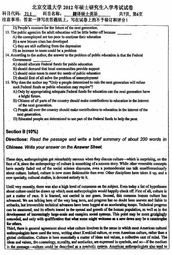 北京交通大学2012翻译硕士MTI翻译硕士英语半岛在线注册真题(2)