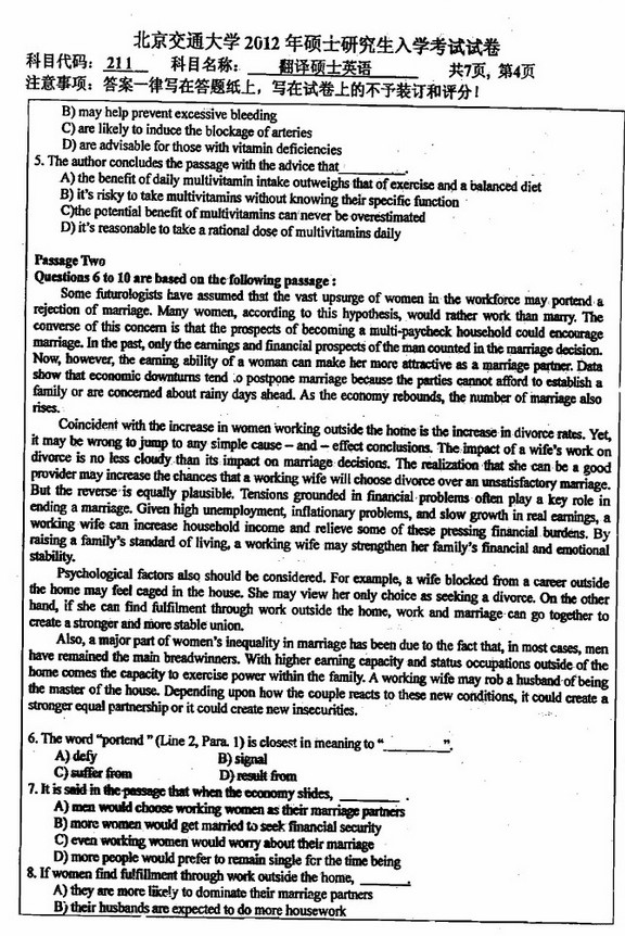 北京交通大学2012翻译硕士MTI翻译硕士英语半岛在线注册真题(6)