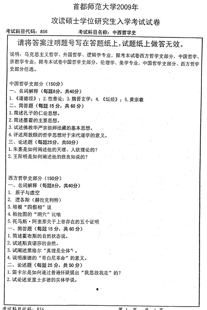 2007-2013首都师范大学中西哲学史历年半岛在线注册真题(3)