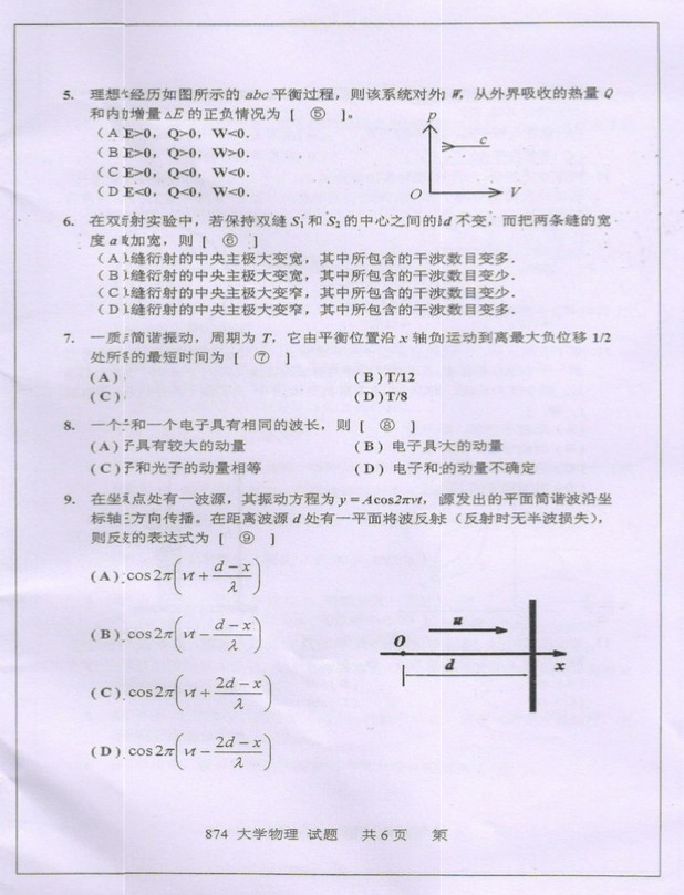 2017年西安电子科技大学874大学物理半岛在线注册真题(2)