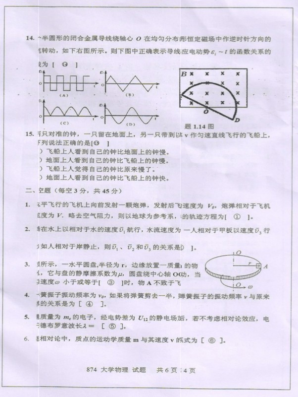 2017年西安电子科技大学874大学物理半岛在线注册真题(4)