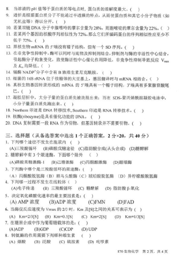 2016年北京化工大学生物化学硕士研究生半岛在线注册真题(2)