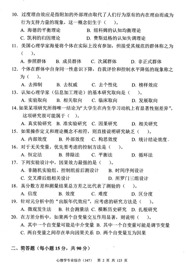 2015年中央财经大学347心理学专业综合半岛在线注册真题(2)