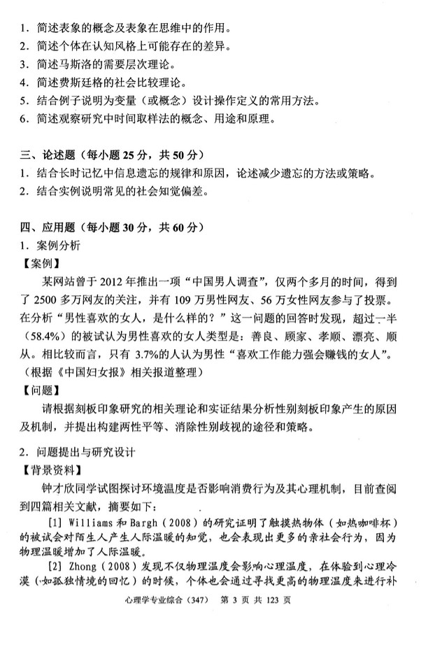 2015年中央财经大学347心理学专业综合半岛在线注册真题(3)
