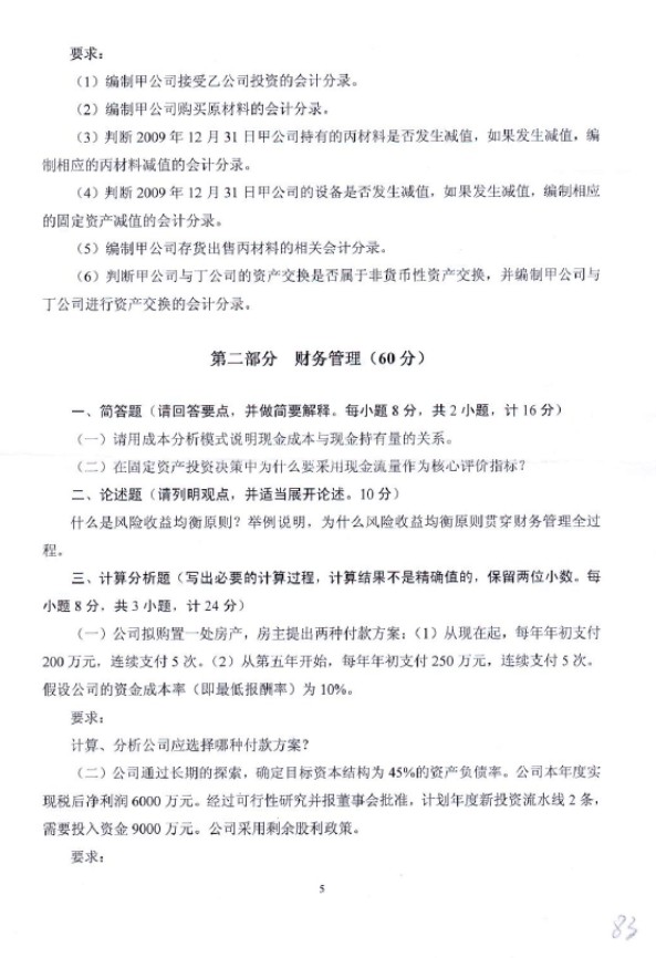 专业课:考试内容包括财务会计,财务管理,审计,成本管理会计。题型有名词解释,简答题,案例分 ...