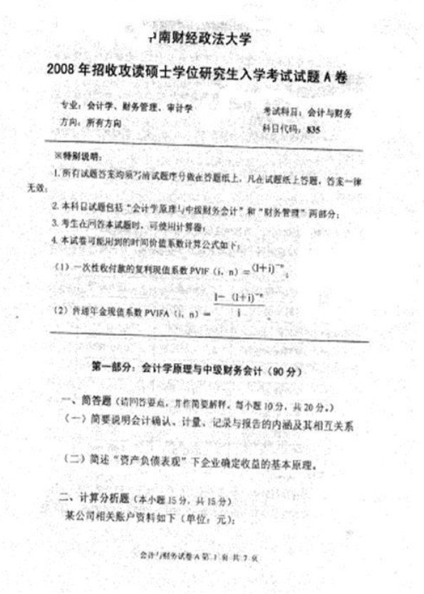 专业课:考试内容包括财务会计,财务管理,审计,成本管理会计。题型有名词解释,简答题,案例分 ...