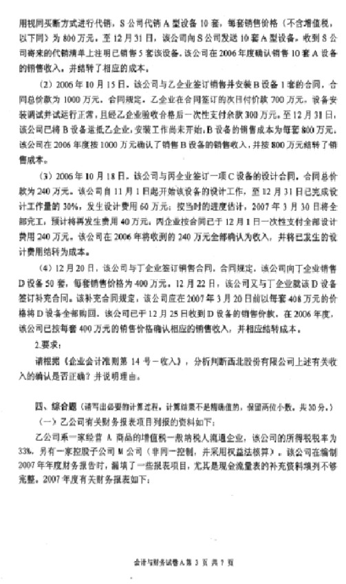 中南财经政法大学2007会计与财务824半岛在线注册试题(3)