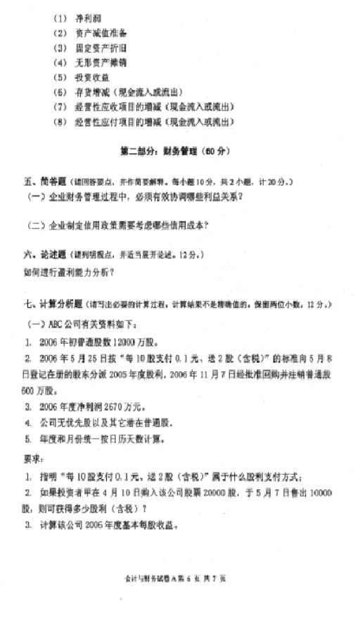 中南财经政法大学2007会计与财务824半岛在线注册试题(6)