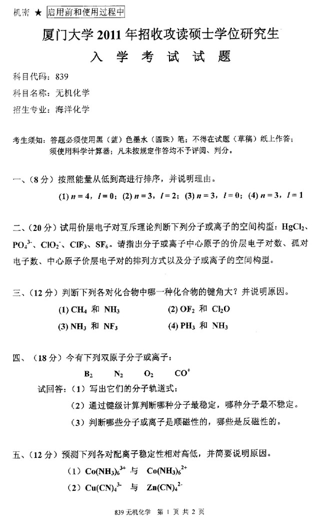 厦门大学2013年招收攻读硕上学位研究生(专业学位)