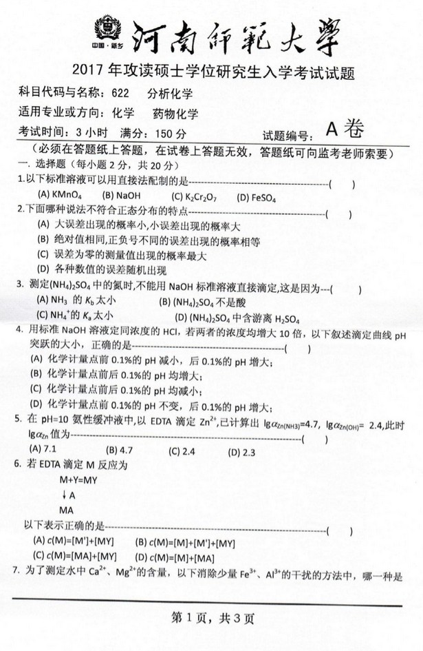 判断题10道,10分。可能没复习好,没挑出错来,感觉都对。记得有滴定盐酸的基准物质 是草酸钠,吸光光度法测铁用铁空心阴极灯,原子发射外标法应用最广