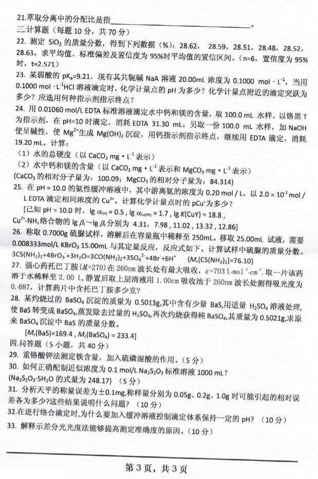 2017年河南师范大学622分析化学半岛在线注册专业课真题(3)