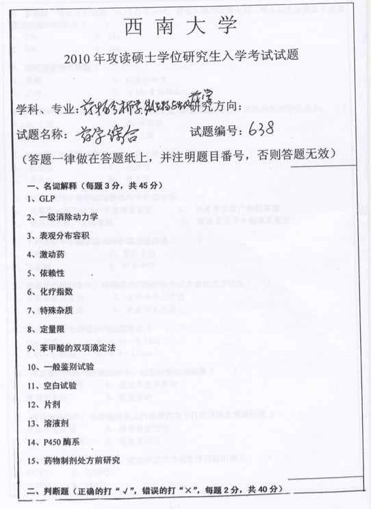四.专业课(347心理学专业综合,西南大学自主命题,题型:名词解释4道5分共20分、简答题4道10分、应用分析题4道30分、论述题3道40分 )