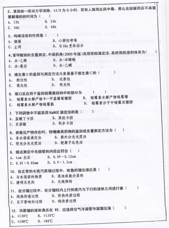 西南大学2010年药学综合半岛在线注册真题(3)