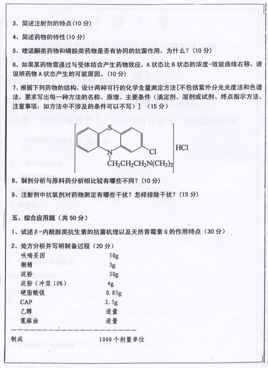 西南大学2010年药学综合半岛在线注册真题(5)