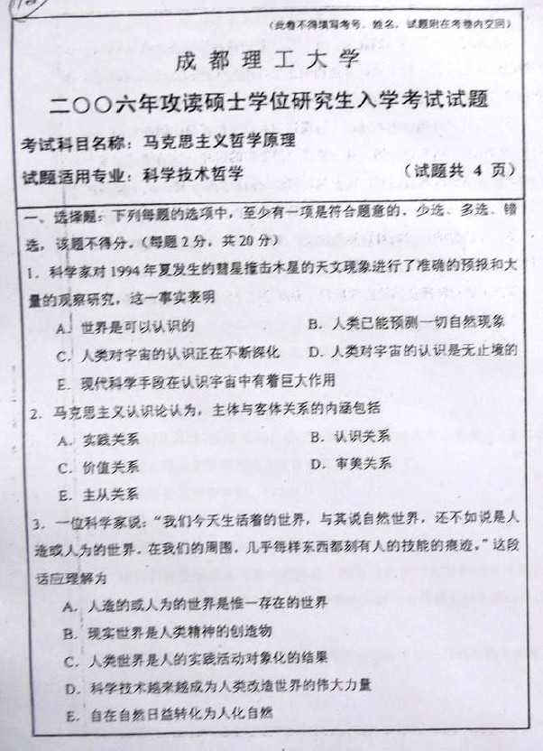 成都理工大学2011-2004马克思主义哲学原理617半岛在线注册真题(11)