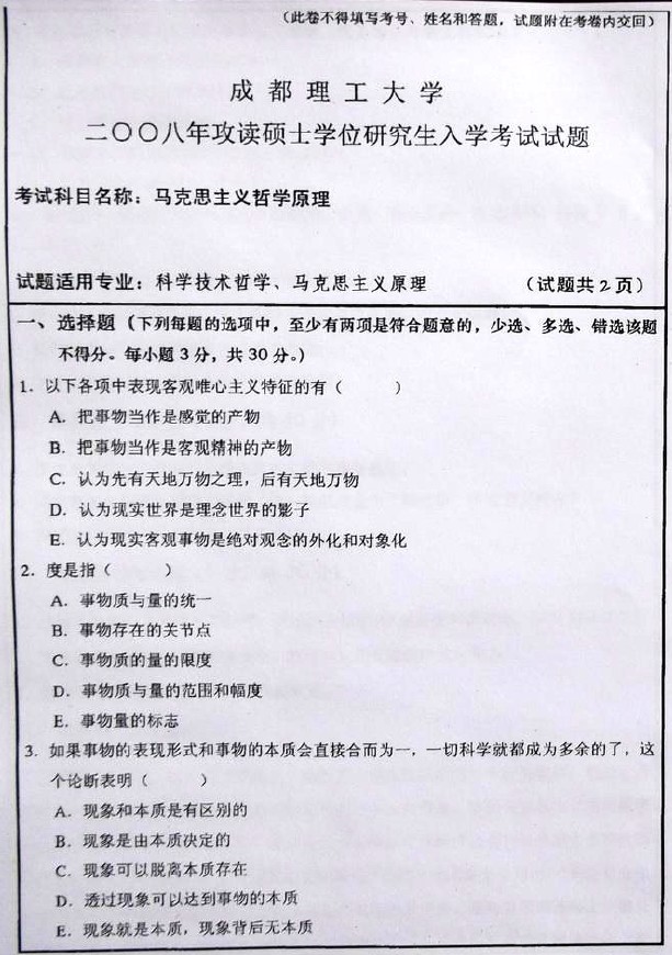成都理工大学2011-2004马克思主义哲学原理617半岛在线注册真题(19)