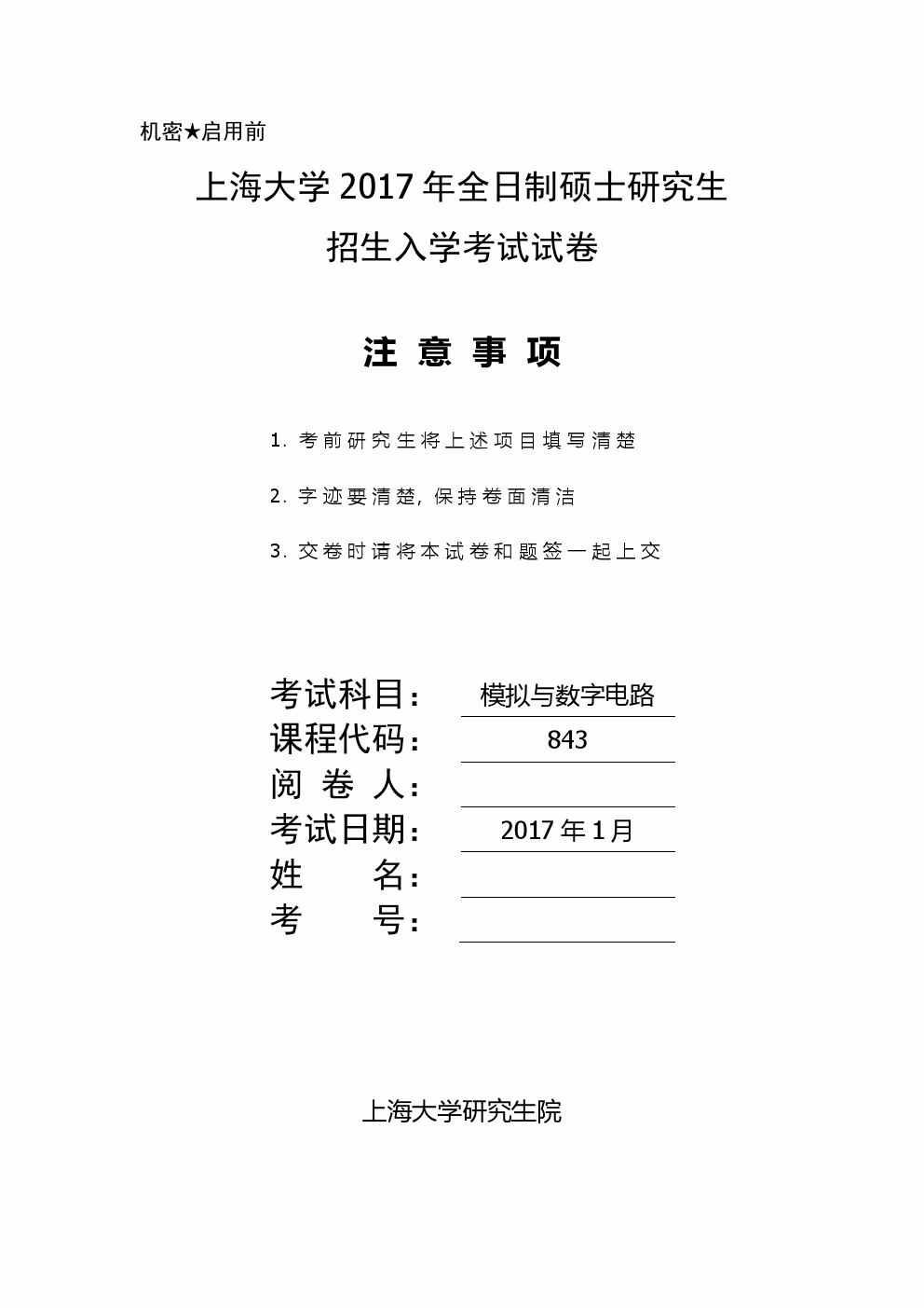 上海大学2017-2015模拟与数字电路843半岛在线注册真题及答案解析