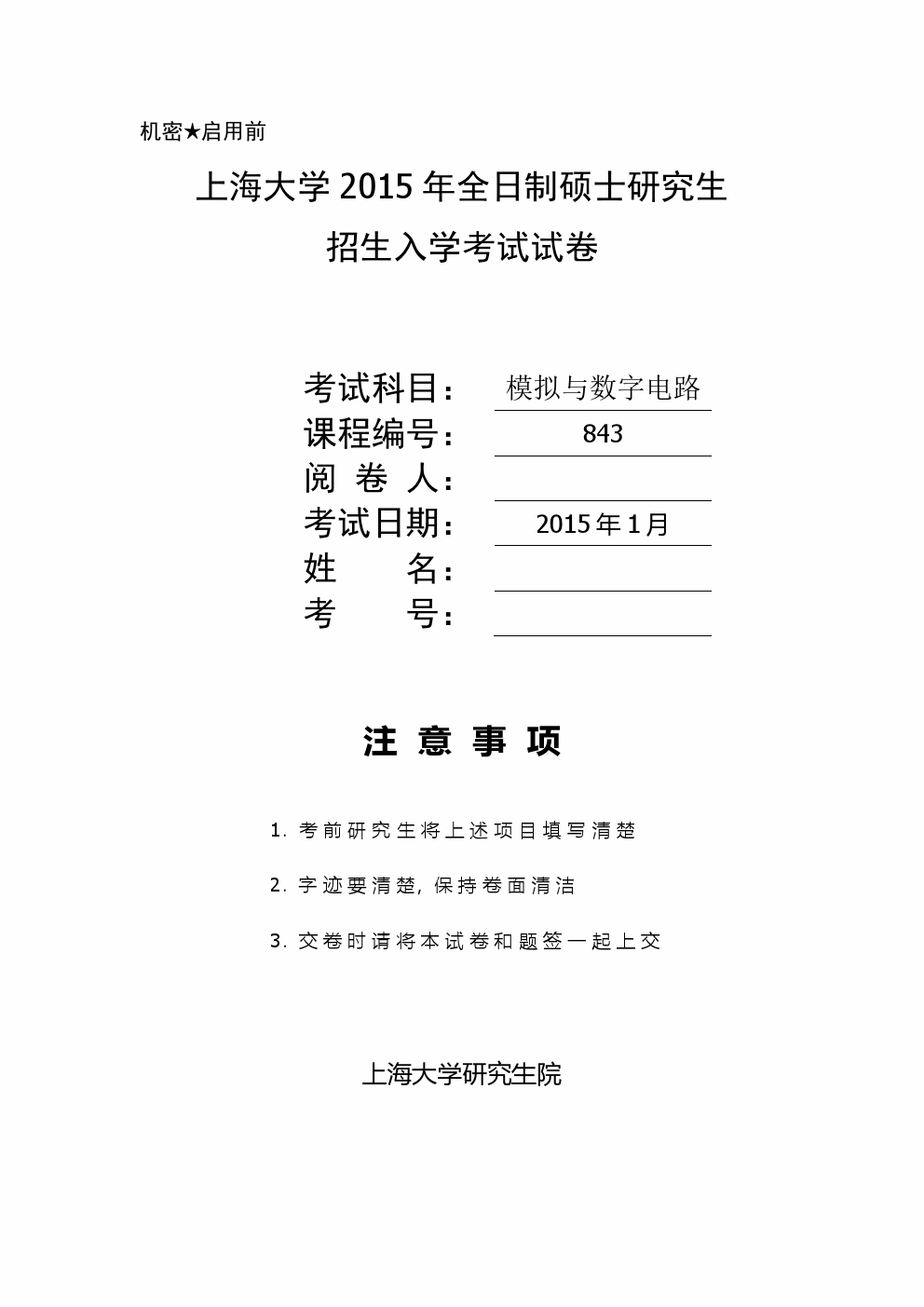 上海大学2017年攻读硕士学位入学考试试题