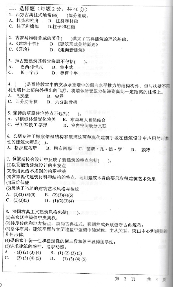 广州大学2017-2014中外建筑史617半岛在线注册专业课真题(2)