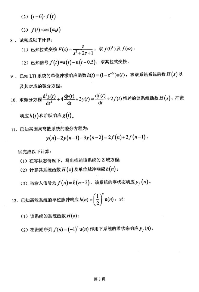 第三章 重点是:傅里叶正逆变换 必考 (正变换5分 逆变换5分)