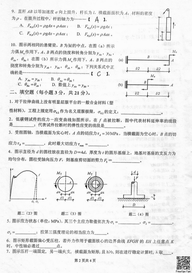 2011年重庆大学921材料力学三半岛在线注册试题(2)