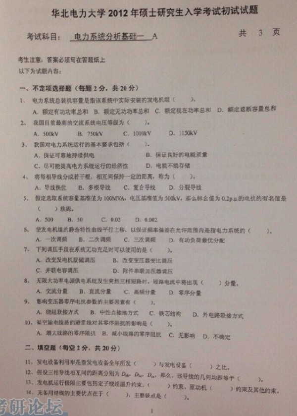 华电复试笔试