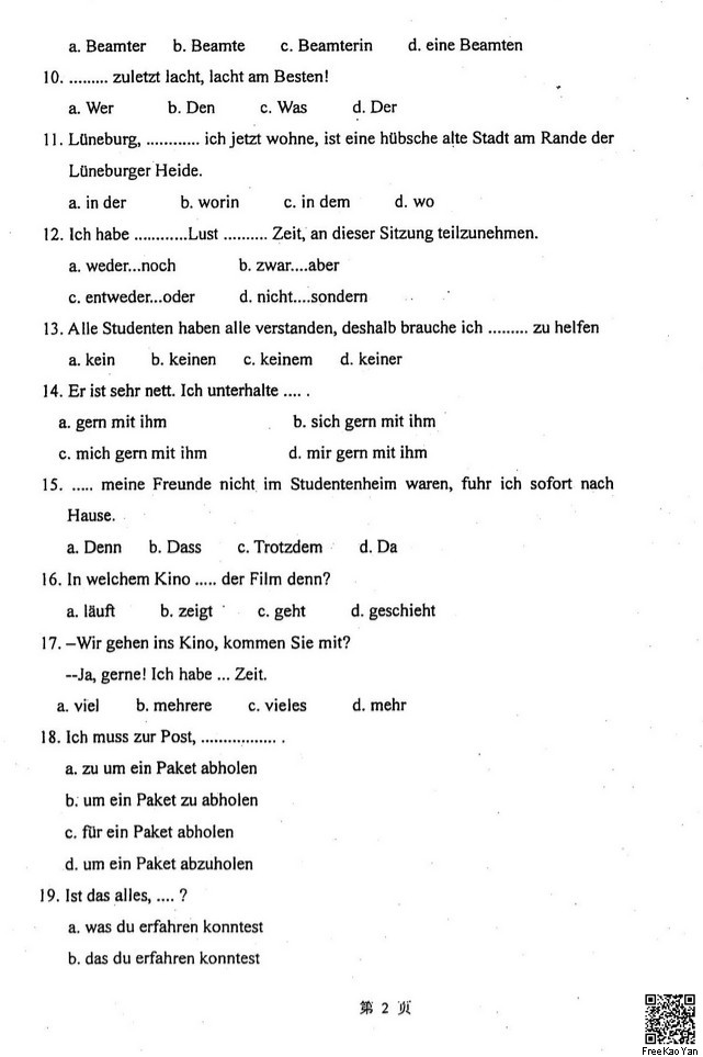 2008年华中师范大学二外德语224半岛在线注册真题(2)