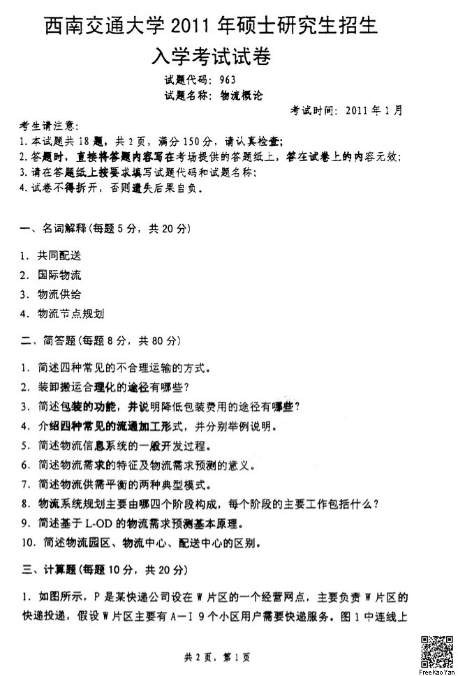 标题: 2020西南交通大学管理与科学853运筹学真题回忆