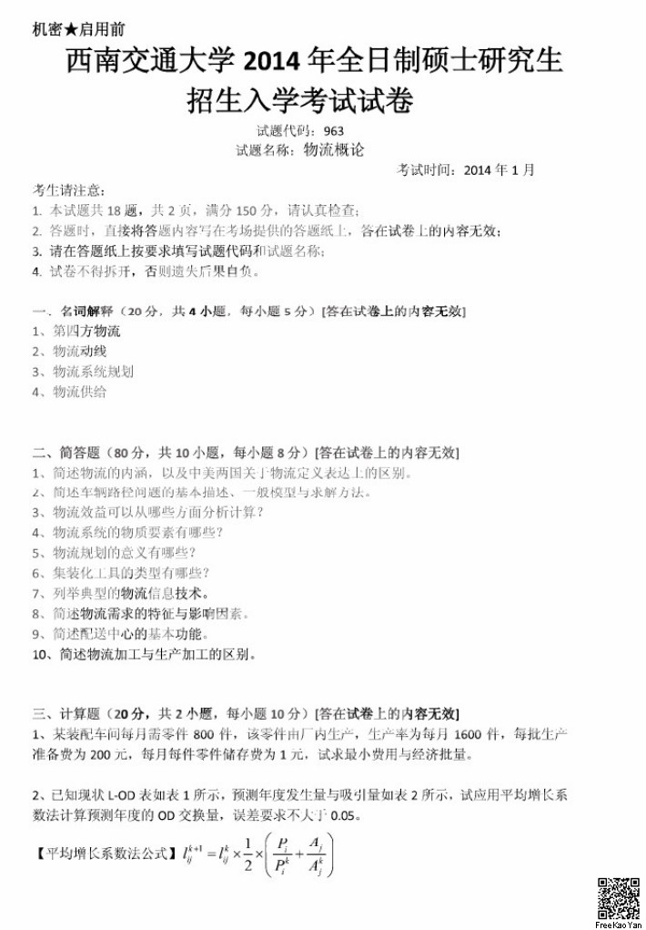 西南交通大学2015-2014,2011物流概论963半岛在线注册真题汇编(3)