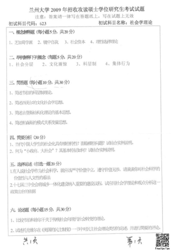 2009-2015年兰州大学社会学理论半岛在线注册真题