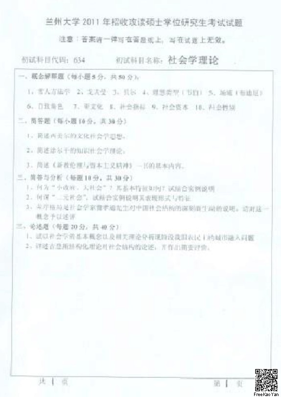 2009-2015年兰州大学社会学理论半岛在线注册真题(3)
