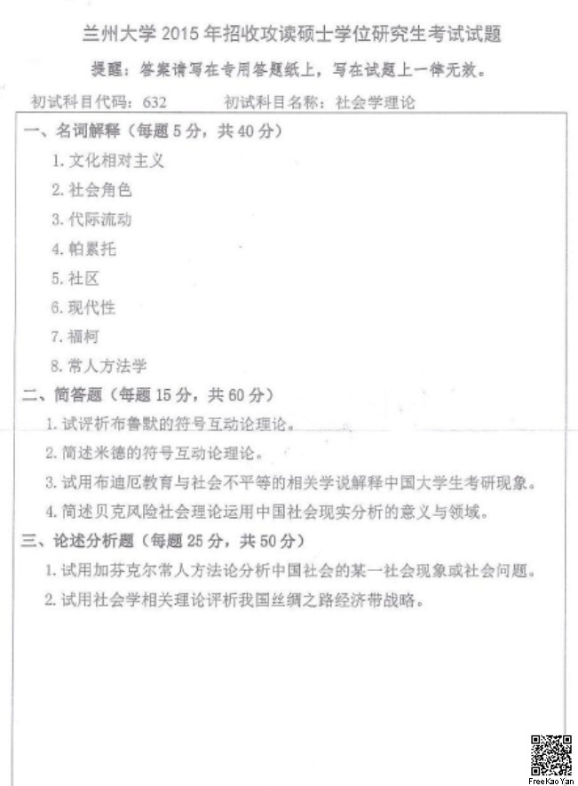 2009-2015年兰州大学社会学理论半岛在线注册真题(7)