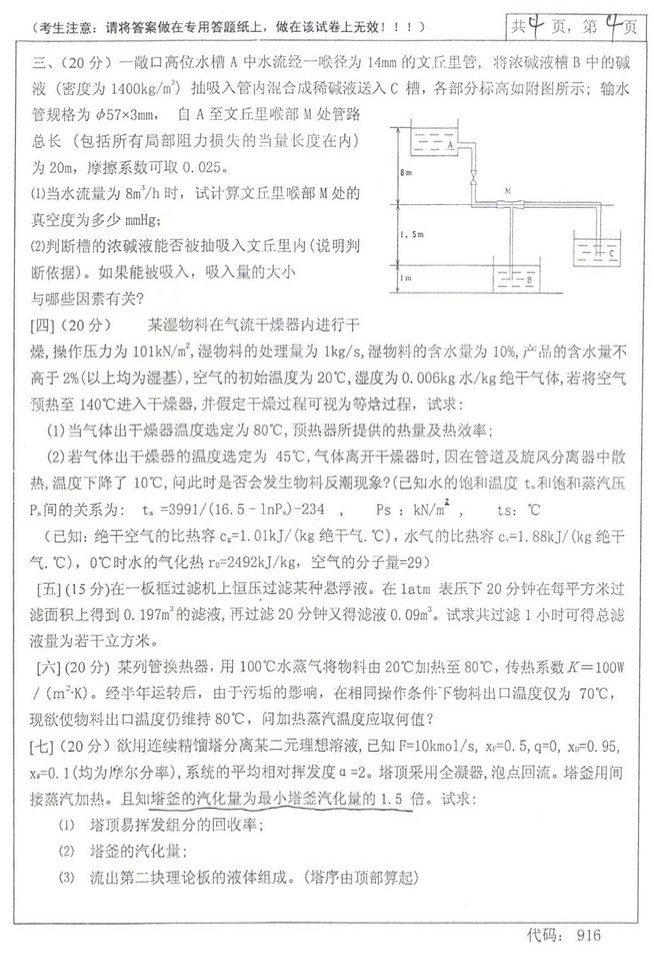2011年中南大学916化工原理半岛在线注册真题(4)