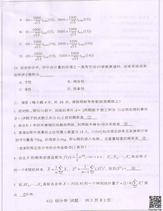 2015年西安电子科技大学432统计学半岛在线注册真题(3)