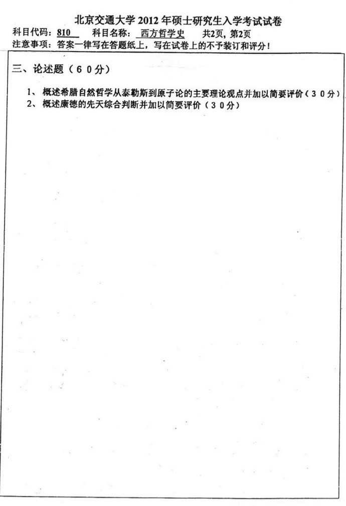 北京交通大学2012年西方哲学史810半岛在线注册真题(2)