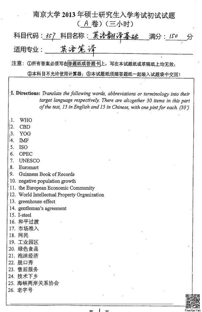 南京大学2013翻译硕士MTI英语翻译基础357半岛在线注册真题