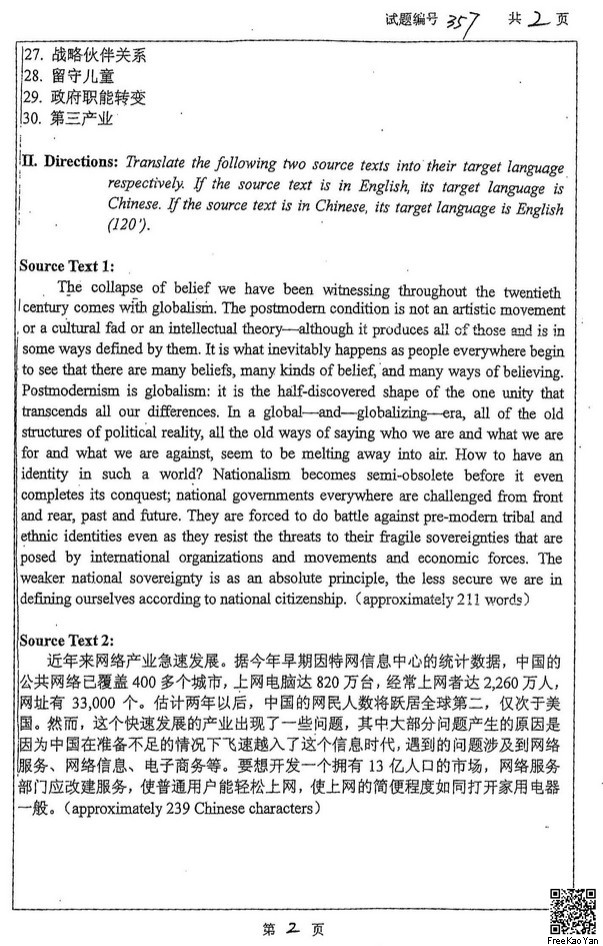 我是跨专业考的国际关系,本次成绩相当的不理想,不配拥有通知书,分数这个事儿吧,被碾压成渣,羞于启齿,就不公布了。唯有专业课二也就是专业英语还可以,所以在这里分享一下学习经历。各位看官有用自取哈。