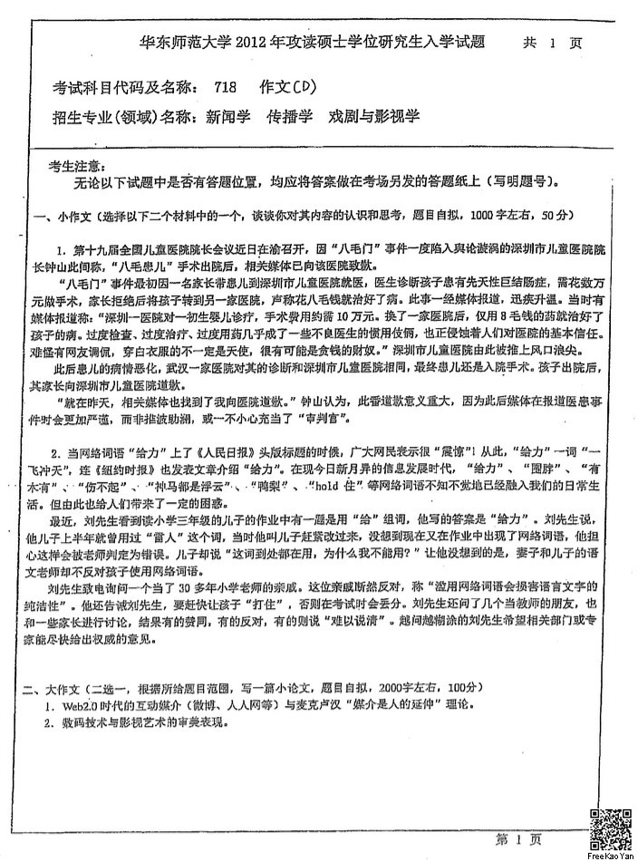 2010-2015华东师范大学718作文(D)半岛在线注册真题汇编(3)