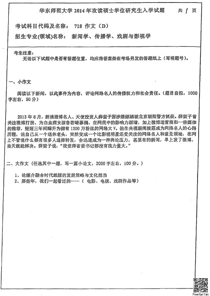 2010-2015华东师范大学718作文(D)半岛在线注册真题汇编(5)