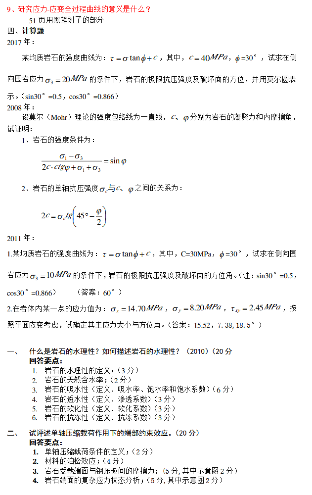 重庆大学半岛在线注册考试岩石力学历年试题统计(8)