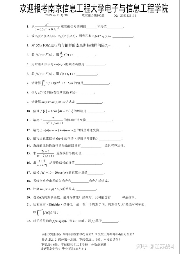 2.(喷子先不用喷,这些都是无偿的)把我给你们的考核卷五套10.04、10.20、11.03、11.10、11.17;10.27日拉斯变化电路题合集;11.24号188选择题合集、11.30号100填空题合集;————这个是最最最最最最重要的。如果你们能把上面的知识点都弄懂(不是背题目背答案)半岛在线注册专业课考不到120以上(前提20年南信大专业课不是变态难),张某人任你宰割!我就在南信大电信院!————这些我已经让群里差不多1000人做过了,另外报考的600个我不认识无能为力哈。