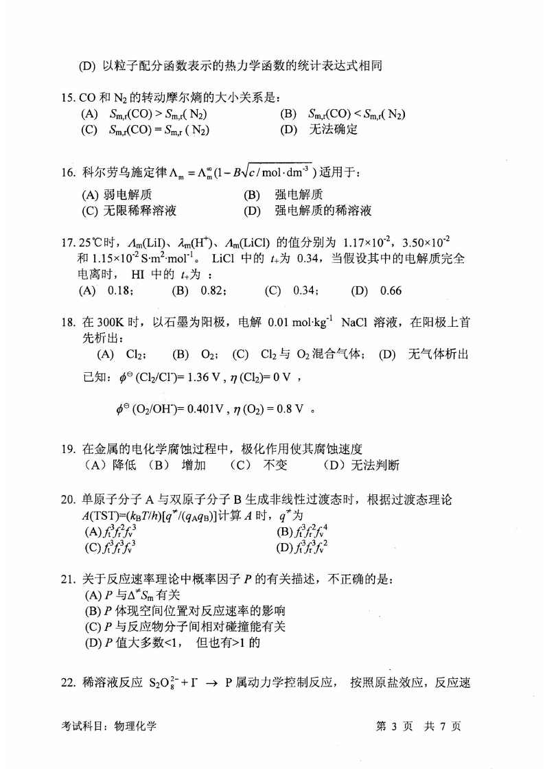 中国科学技术大学2016-2011物理化学半岛在线注册真题和答案(10)
