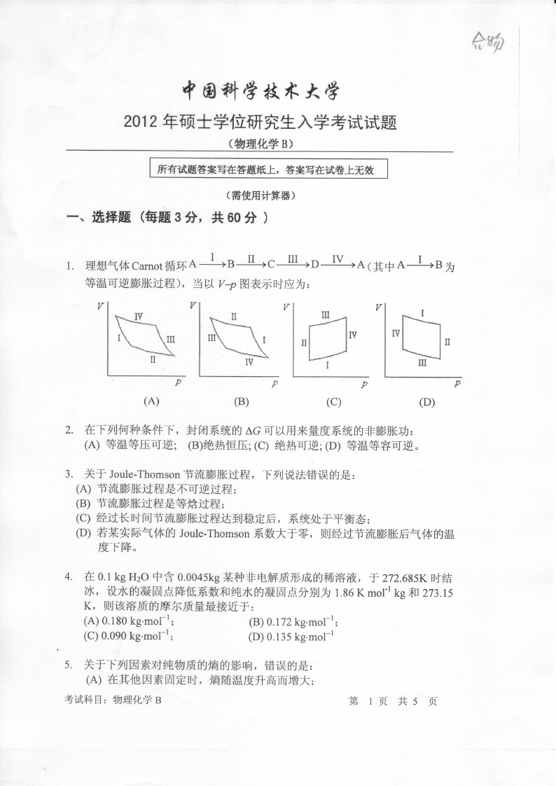 中国科学技术大学2016-2011物理化学半岛在线注册真题和答案(29)
