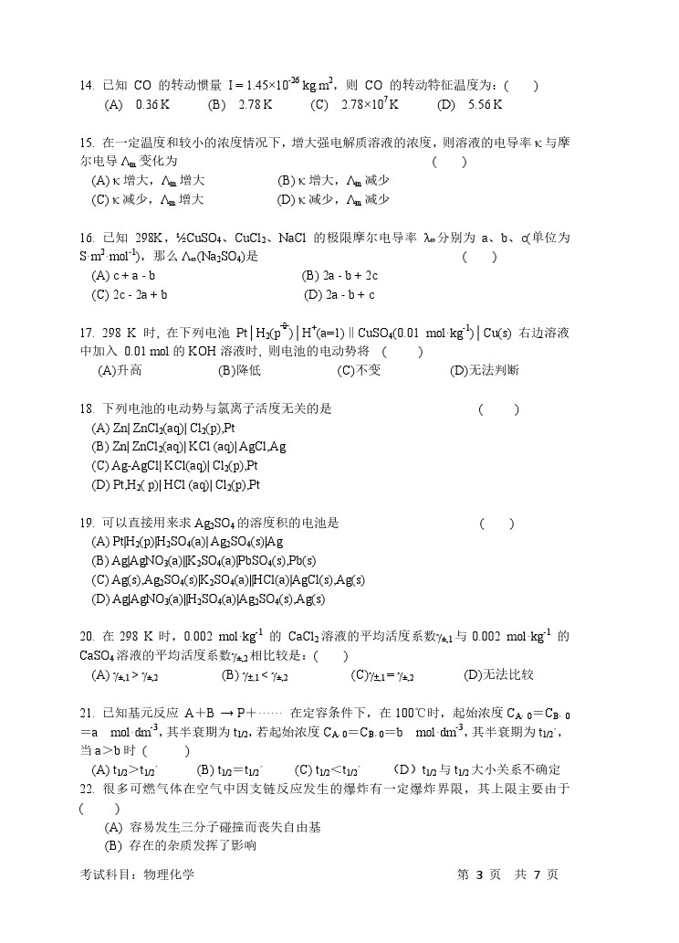 中国科学技术大学2016-2011物理化学半岛在线注册真题和答案(3)